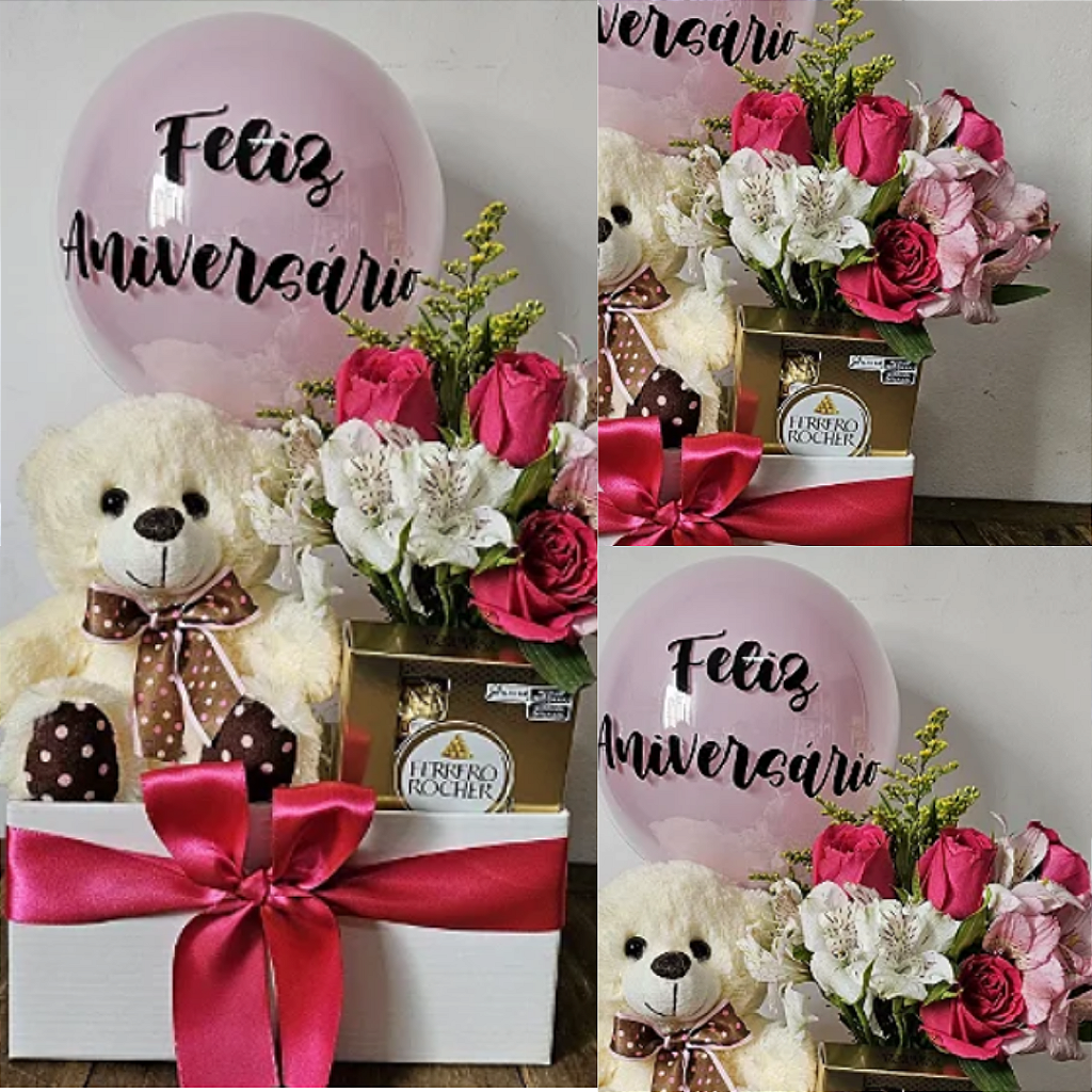 Box Pelúcia, Chocolate, Flor e Balão